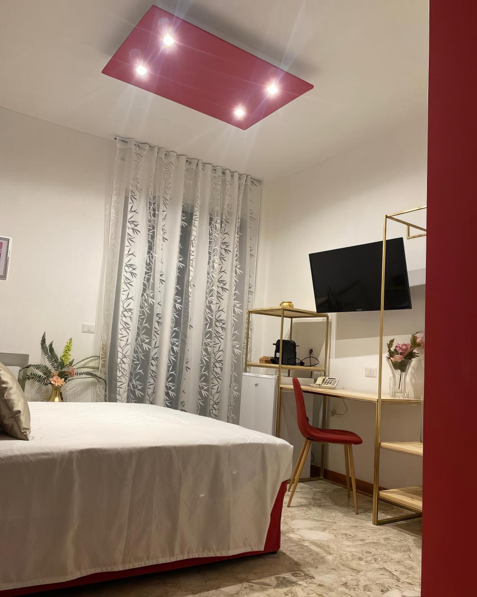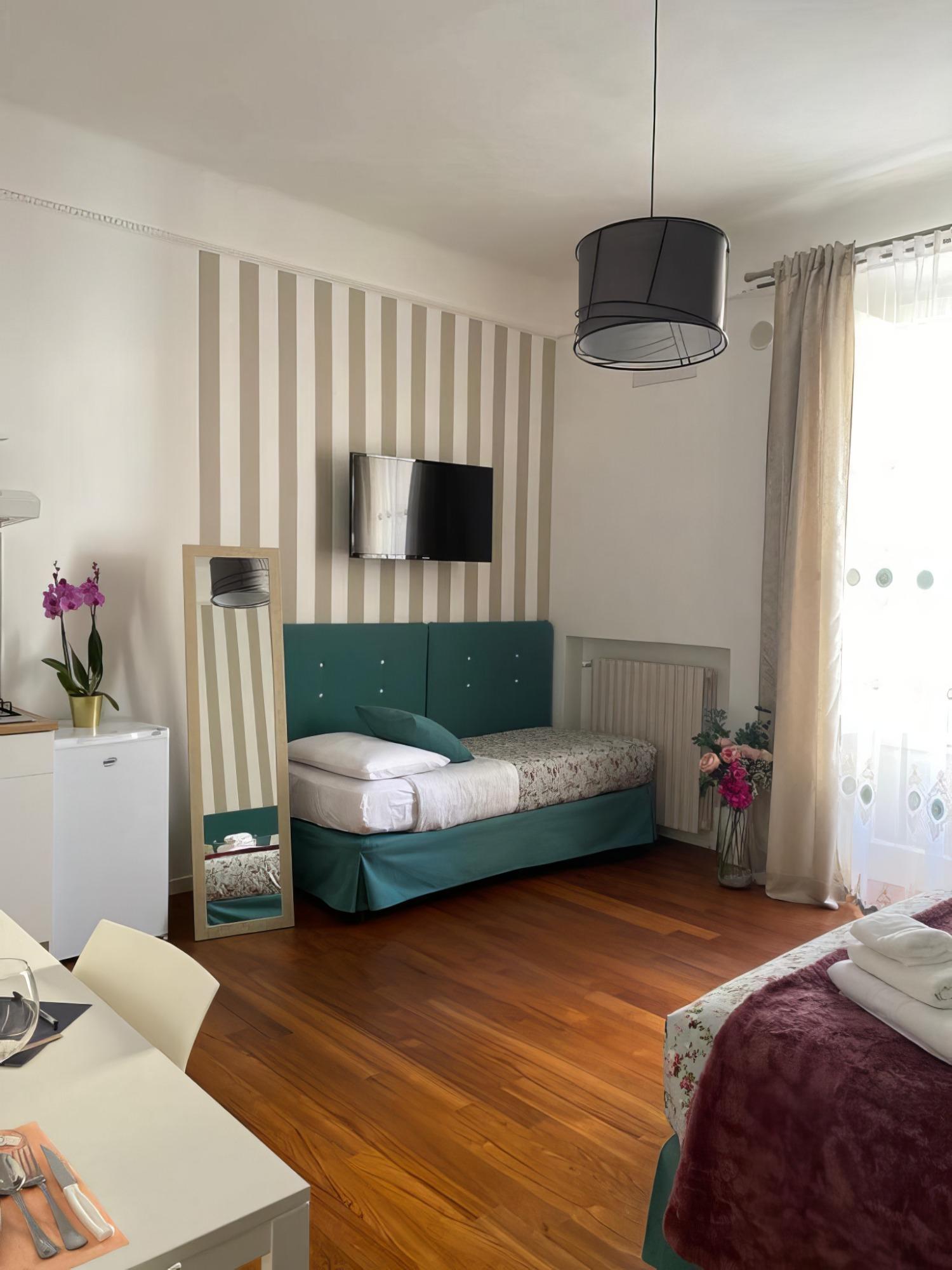 The rooms are stylish and functional, each equipped with a private bathroom, smart TV featuring streaming channels, complimentary Wi-Fi, a desk, wardrobe, coffee machine, and balcony. Some accommodations offer a pleasant view of the square and its garden. Additionally, every unit at Dimora includes a well-equipped kitchenette, perfect for those seeking more independence during their stay.