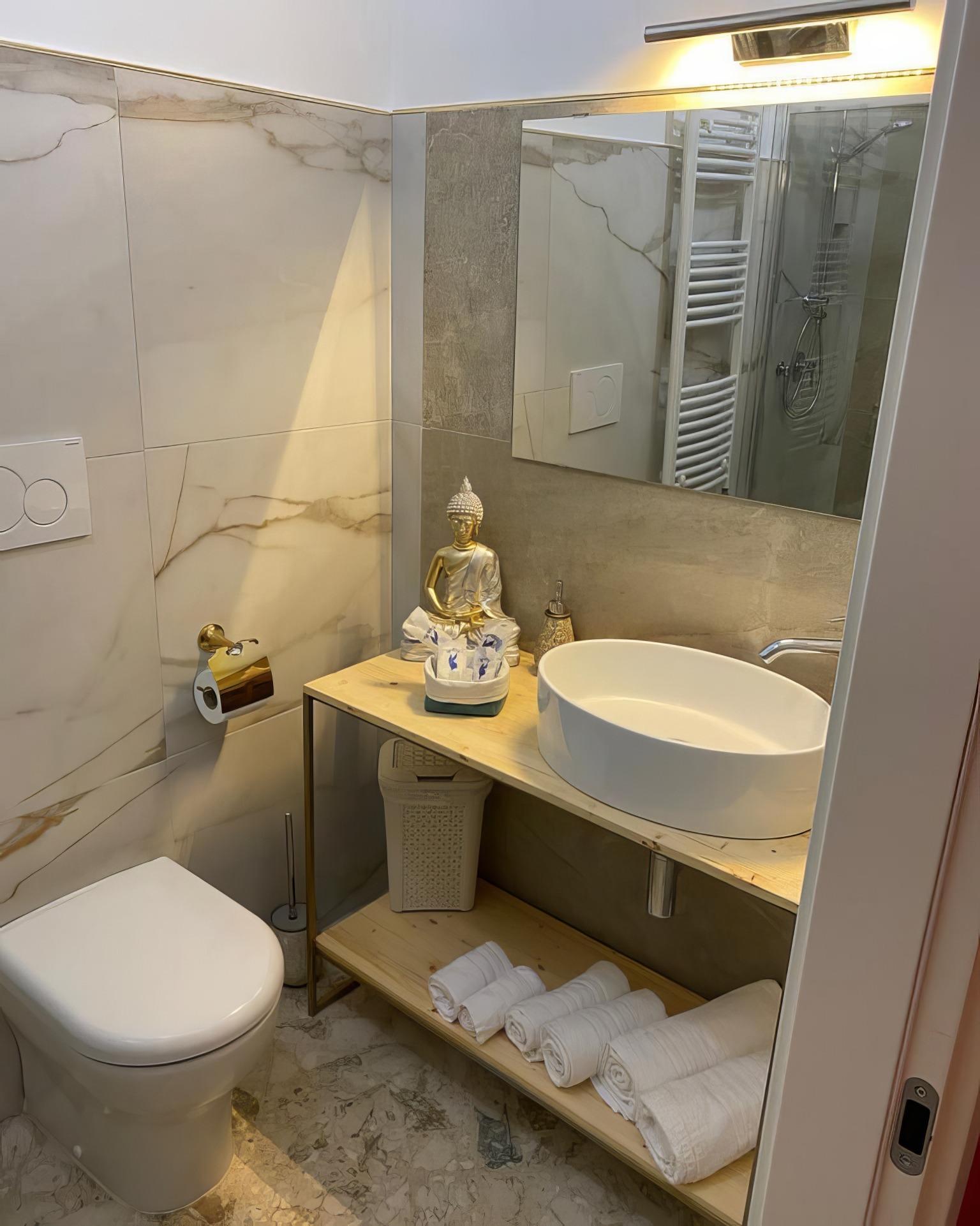 Nearby, you can find the Swabian Castle, the Margherita Theatre, the Basilica of San Nicola, and the Cathedral, as well as numerous restaurants, cafés, and local shops. The area is well-served by public transportation, with a bus stop right in front of the entrance and the central station within easy reach. Just a few meters away, there is also a supermarket, a newsstand, a taxi station, and other essential neighborhood services. This strategic, convenient, and authentic location is ideal for experiencing all the nuances of Bari.